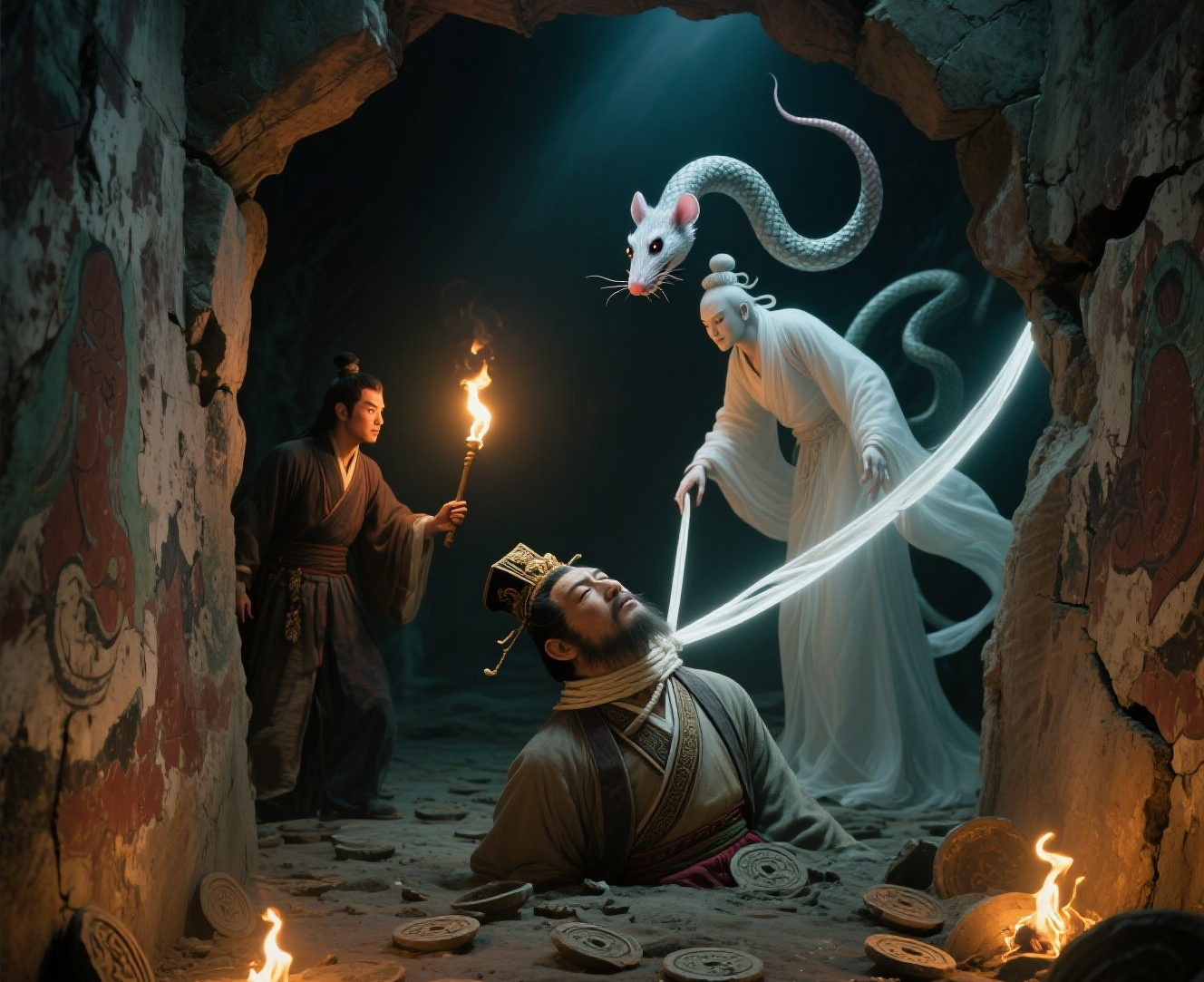 民间传说为大运河蒙上神秘色彩。雍邱古墓裂开的洞口,狄去邪手持火把深入地宫,目睹白鼠精幻化的隋炀帝被天神用白练绳勒死的场景,恰似历史轮回的隐喻。而考古发现的墓志铭文“帝崩於扬州江都县……葬炀……礼也”,与《隋书·炀帝纪》“萧后合葬雷塘”的记载形成奇妙互文。