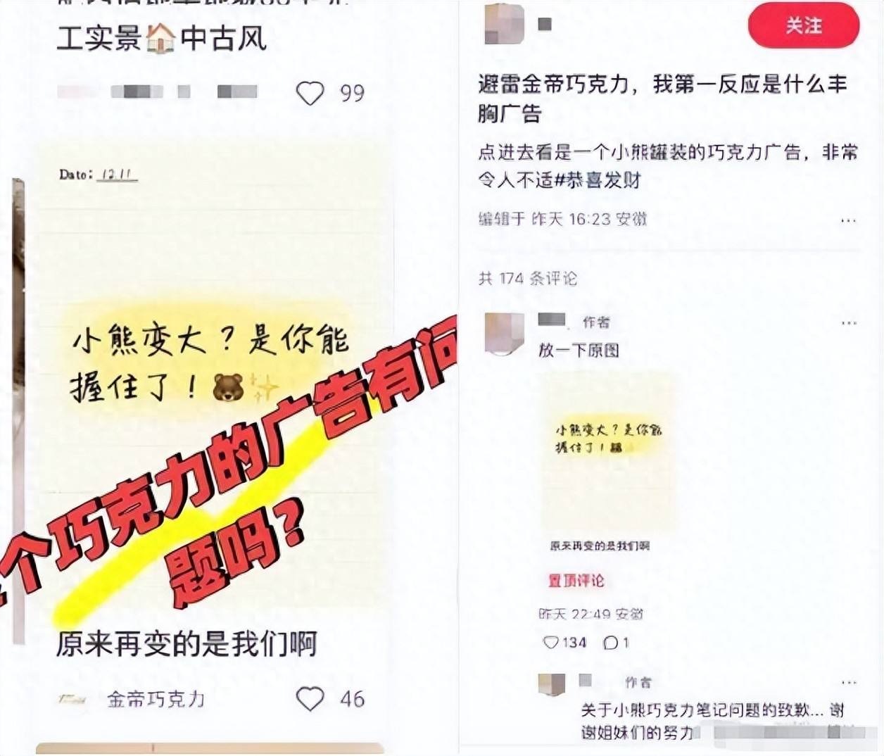 1月12日,金帝巧克力发布致歉声明,就营销内容不当展示一事道歉。声明称,投放平台系统将内容自动优化成大字报对外展示,投放后展示偏差金帝未及时跟进,导致不当内容曝光。内容原意是想解释,复刻的小熊巧克力是否比小时候买的尺寸缩小了,核心是想讲述产品按原版1比1复刻。在营销投放的监督和管理上,金帝称存在严重疏漏,目前已采取的整改措施有: