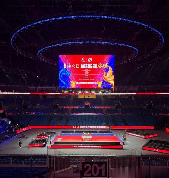 乒超总决赛的比赛场馆看着真大啊,地胶也是红色的,看着挺不错,不过对于现场看球赛的观众来说有点不友好,估计在第一排坐着也看不太清楚吧。去年的乒超总决赛国乒很多教练都去现场观赛了,今年还没看到有教练来南京,不知道他们会不会来。