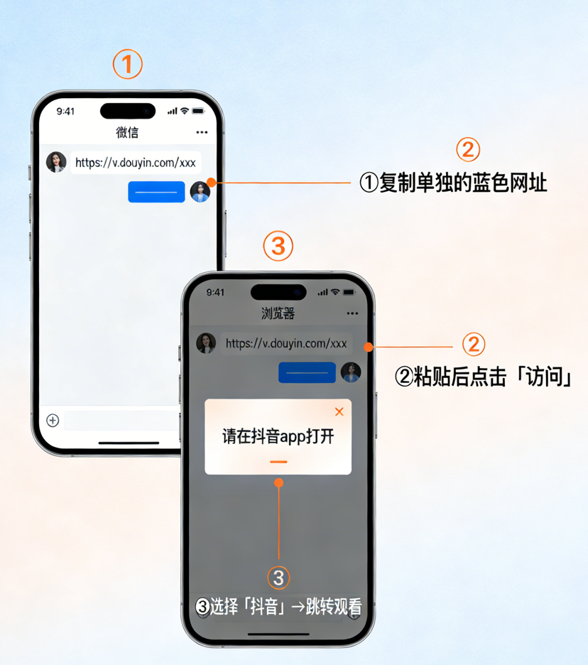 浏览器一般情形下会给出提示“请在抖音app打开”,或者弹出能够打开此链接的应用清单。你只要从清单里挑选出“抖音”,系统就会去调用抖音App并且加载与之对应的视频内容。这种方法能够切实有效地绕过一部分社交软件的直接屏蔽的问题。