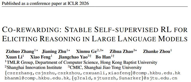 论文标题:Co-rewarding: Stable Self-supervised RL for Eliciting Reasoning in Large Language Models