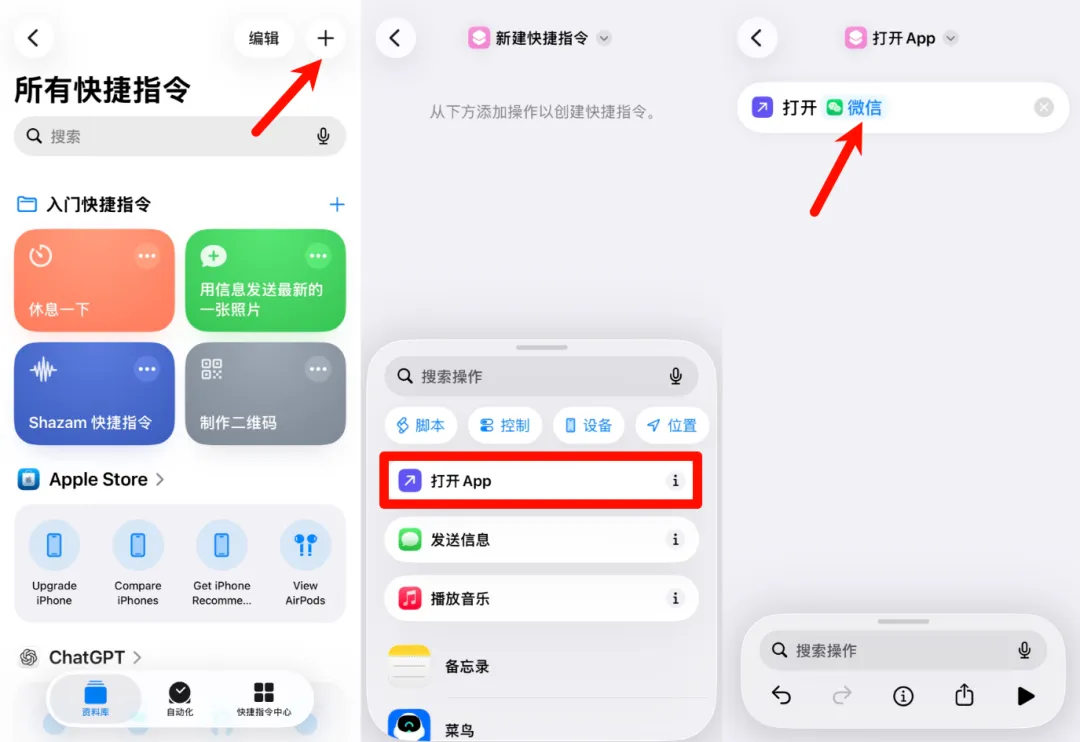 将喜欢的马年微信皮肤下载至手机相册,就可以跟着核妹一起做了~打开「快捷指令」应用,点击右上角的「+」按钮。