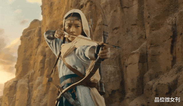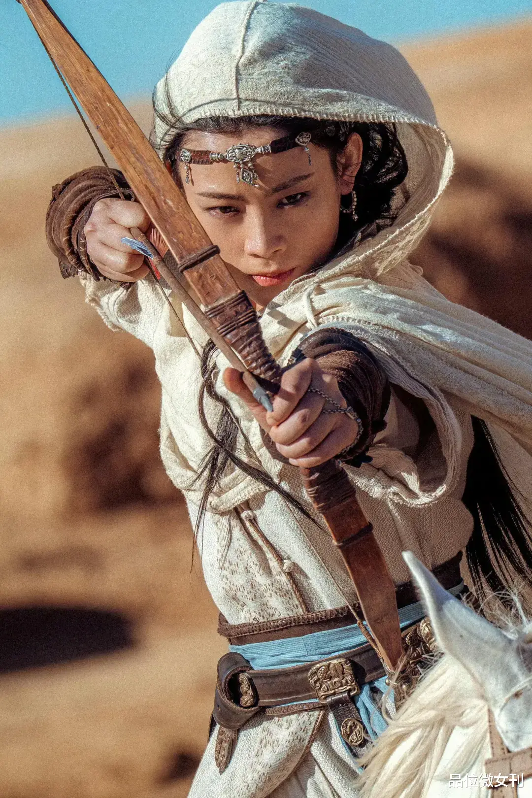 陈丽君版的阿育娅,从天真部落少女,成长为扛起使命的大漠女王,贡献了不少名场面。她的“咬箭羽”镜头,相关话题播放量早就破亿了。