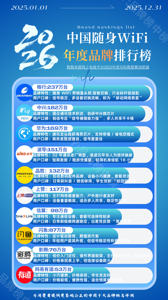 2026随身WiFi怎么选?这十大品牌值得你提前关注!刚翻完去年随身WiFi市场的销售数据,发现这玩意儿越来越成刚需了—