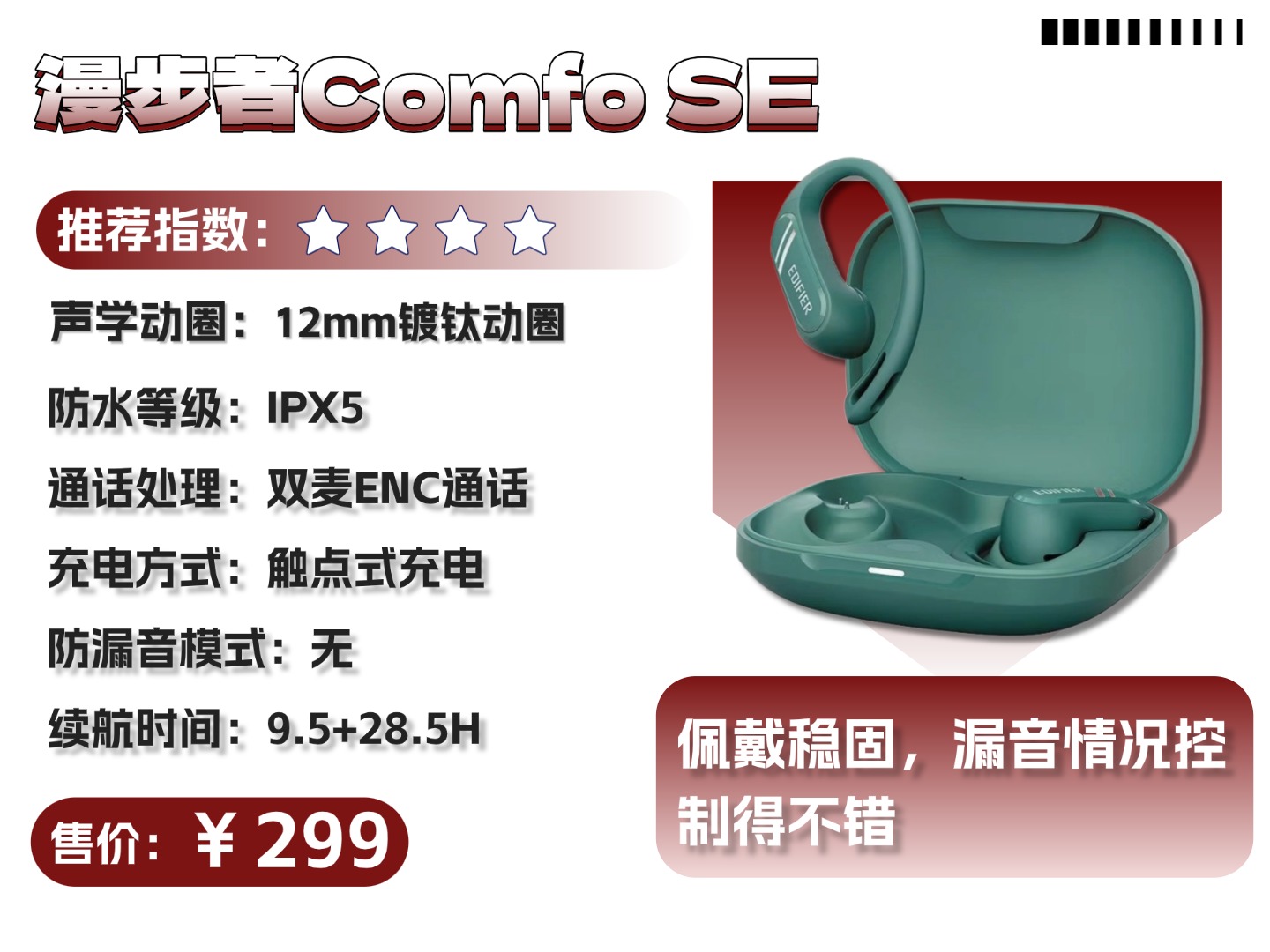 漫步者 Comfo SE价格:299元