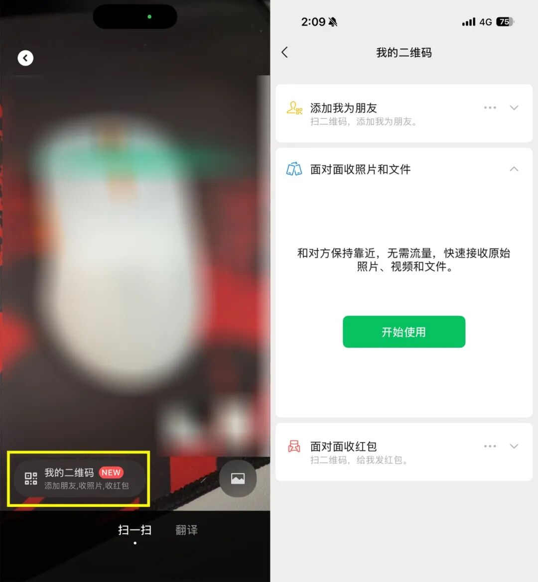 此外,微信还在此入口整合了“面对面收红包”功能,同样无需添加好友,对方扫码后红包可自动领取,非常适合朋友聚会AA制分摊费用等场景。