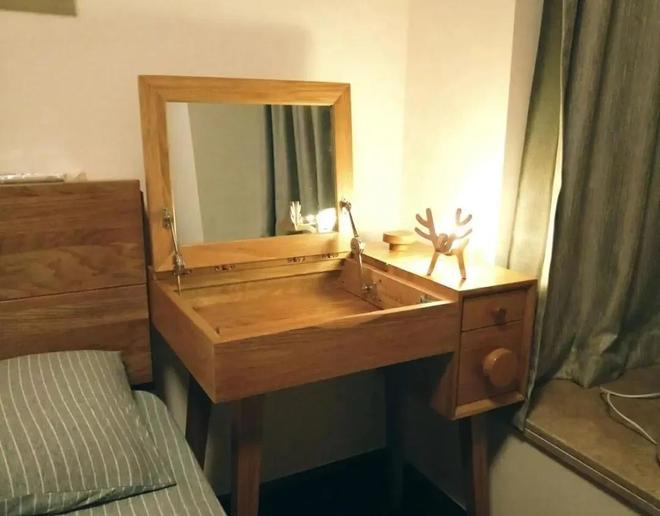 因此,建议大家,翻盖化妆桌再别往卧室里搬了,理想很丰满,现实很骨感呀。真需要化妆桌的,还是用传统的或者是在衣帽间里做一个。
