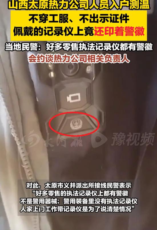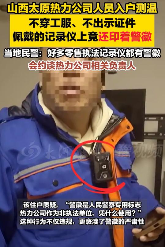 最引发争议的是:工作人员佩戴的记录仪上竟印有警徽,居民质疑"热力公司何时变成执法部门?"