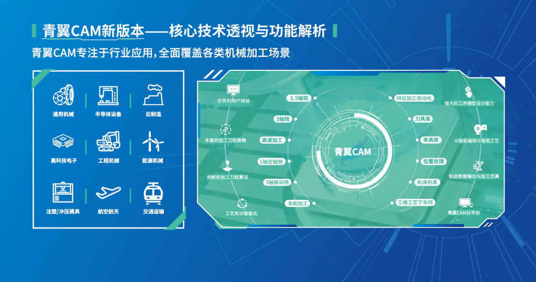 “我们用5年时间,实现了对标国际领先企业数十年发展路径的追赶。”严翼飞介绍:“青翼CAM是国内少数从底层架构到产品技术栈全面对标国际主流厂商的大型高端通用CAM软件。计划于今年4月发布的新版本,将涵盖CAD几何处理与工艺建模、多轴加工(2轴至5轴联动)、车削加工、特征加工与自动化、工艺知识库、后处理与输出、机床仿真、三维工艺下车间等核心功能。”