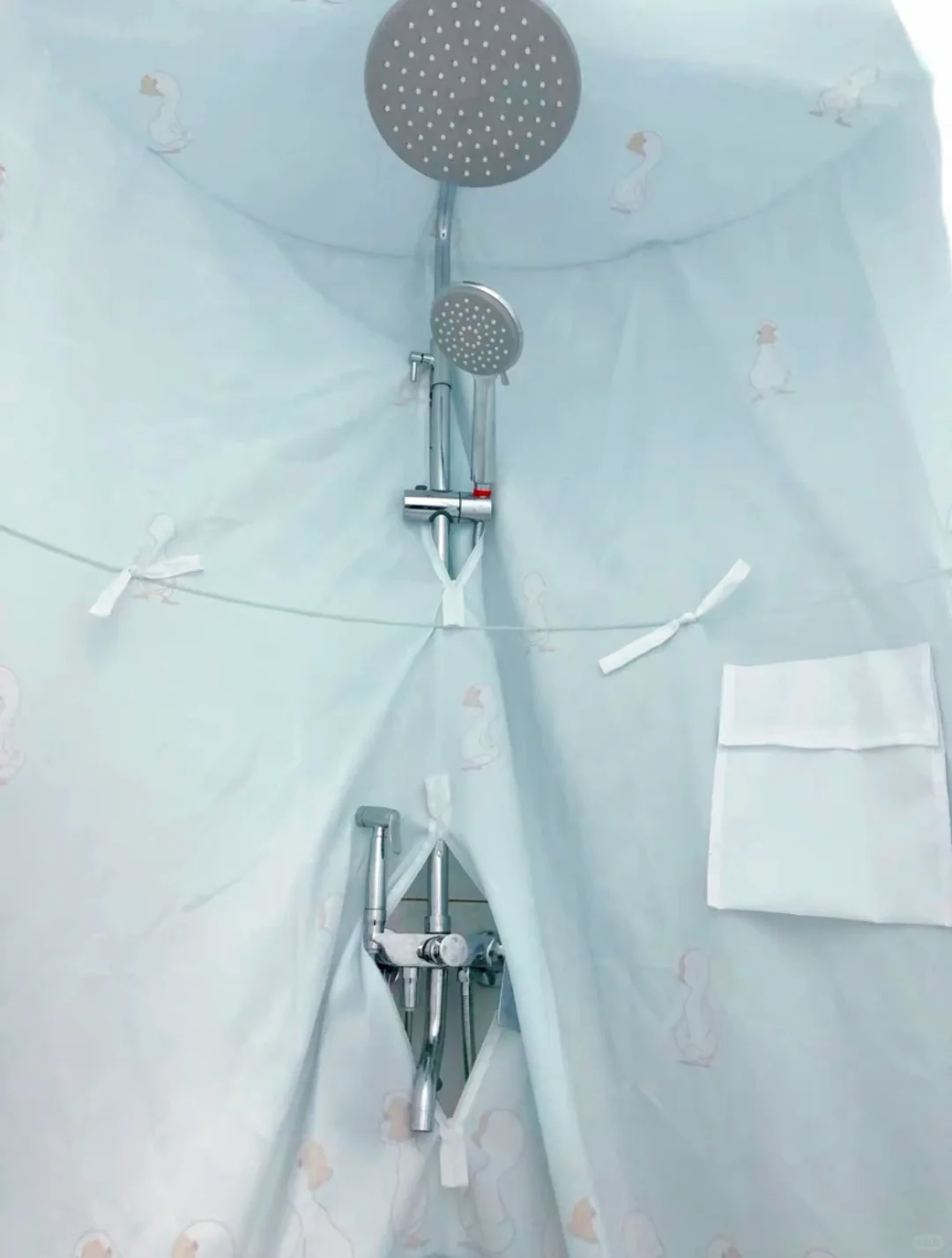 它可以将淋浴的一小块区域围起来,我们在洗澡的时候热气就不会跑出去了,既防风又能起到保暖的作用。