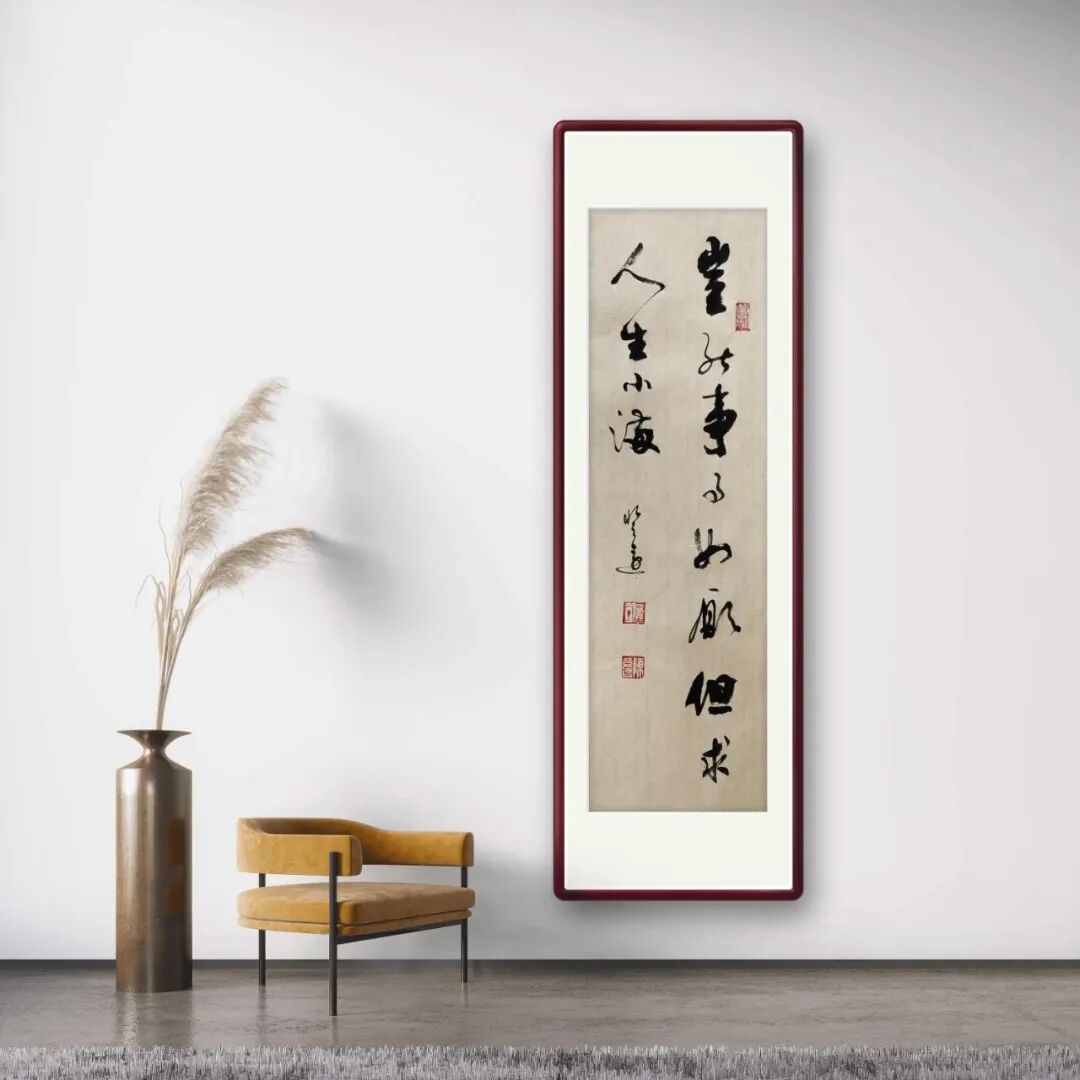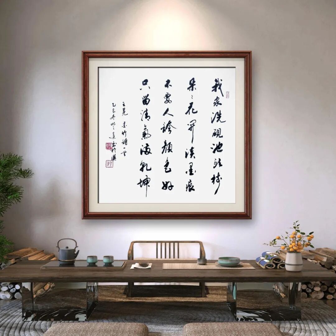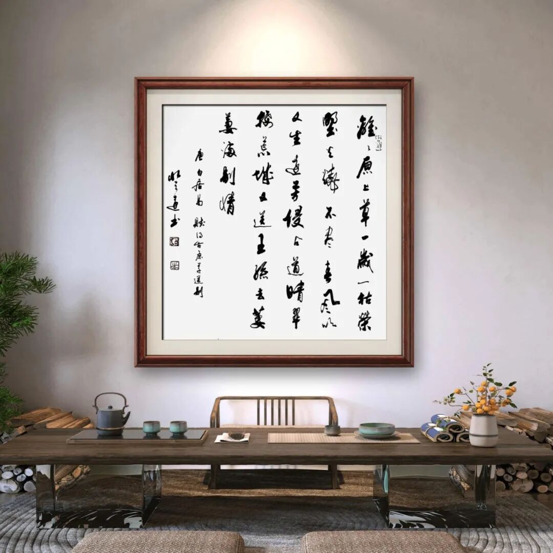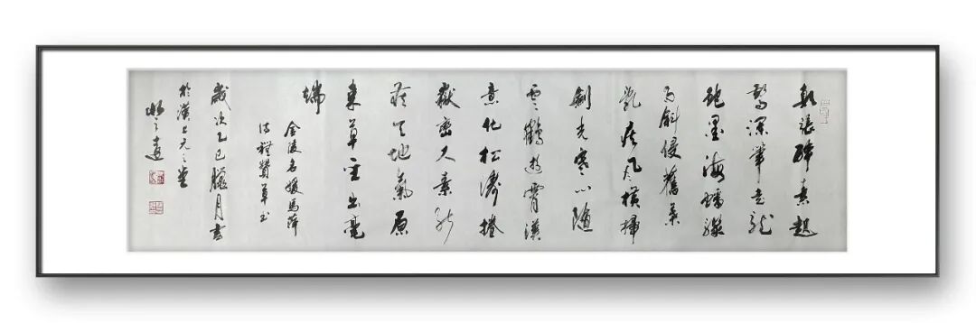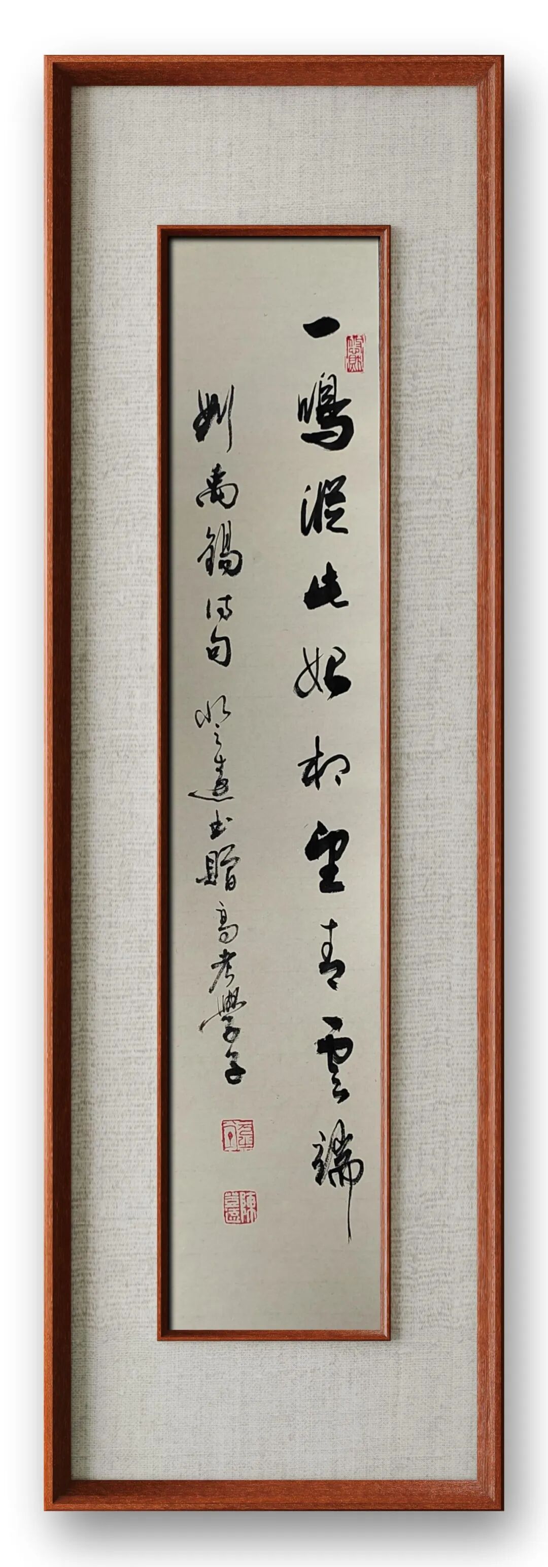 先生书法最动人者,在其刚柔并济之态。笔下线条如奔雷坠石,亦如兰叶拂风,直画如剑藏锋芒,曲笔似藤蕴生机。其作品法度严谨却不囿于成规,奔放自如而不失沉稳,厚重处见筋骨,飘逸处显灵动,真正做到了骨肉相济、动静相宜。字形正倚交错,大小开合间尽显跌宕之趣,浓淡枯湿的笔墨变化,让每一幅作品都充满韵律感与生命力。