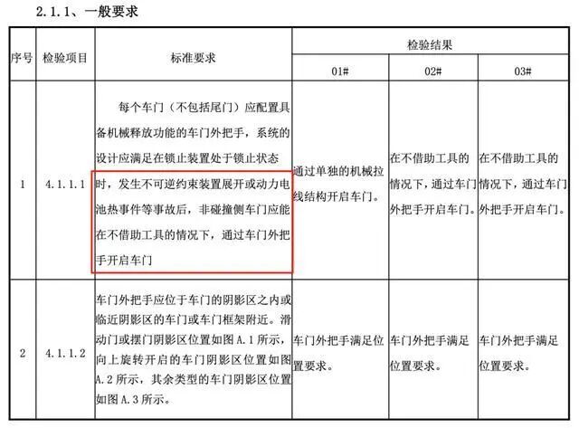 图/对车内外门把手的标准要求,来源/互联网 新能源观截图