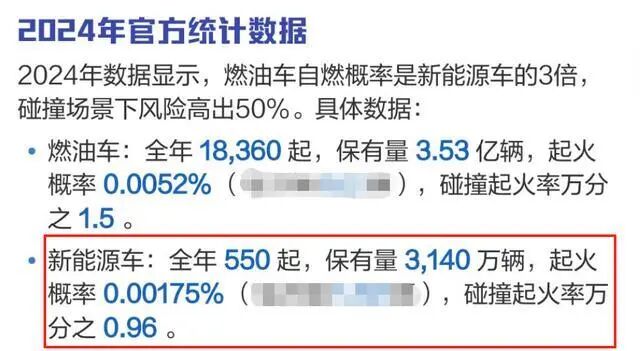 但消费者不用过于担忧,一方面电车起火概率较低,权威部门数据显示,2024年我国电车保有量为3140万辆,起火数量为550辆,相当于每10万辆有1.75辆起火;另一方面,市场监管总局加强了对电车安全的监管措施,尤其是聚焦了动力电池等关键部件风险。