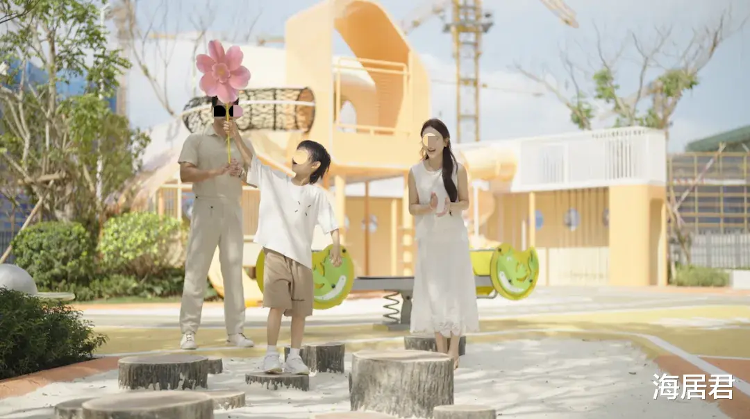 不远处,刚办完交付手续的一家三口正驻足停留。小朋友在儿童乐园里撒欢奔跑,清脆的笑声,撞开了傍晚的温柔。