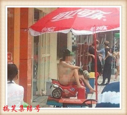 搞笑内涵图:妹子天气太热,只能这样出来乘凉了