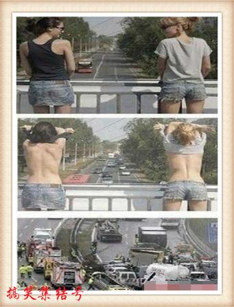 美女们,你们这是太害人了吧..都引起了车祸了..