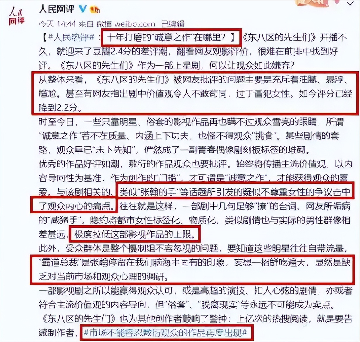 最终人民日报亲自下场,点名批评了这部剧,提醒文艺创作者要坚守原则和底线。