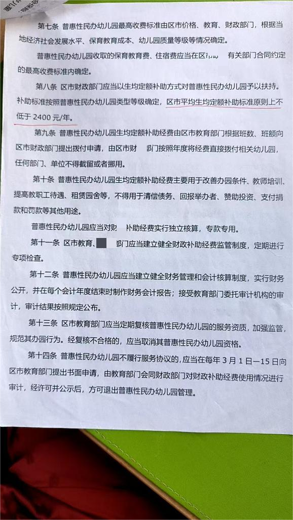 更值得关注的是,该补助标准既低于青岛市 “每生每年不低于 2400元(折合 200元/月/生)” 的规定,也远低于平度同期其他整改幼儿园300元/月/生的标准;青岛其他区市无“普惠收费后再降费才给补助”的要求,唯独平度违规加码,而该园需与其他区市幼儿园一样全额执行市级管理文件,“补助搞特殊、管理一刀切”的双标做法引发强烈质疑。