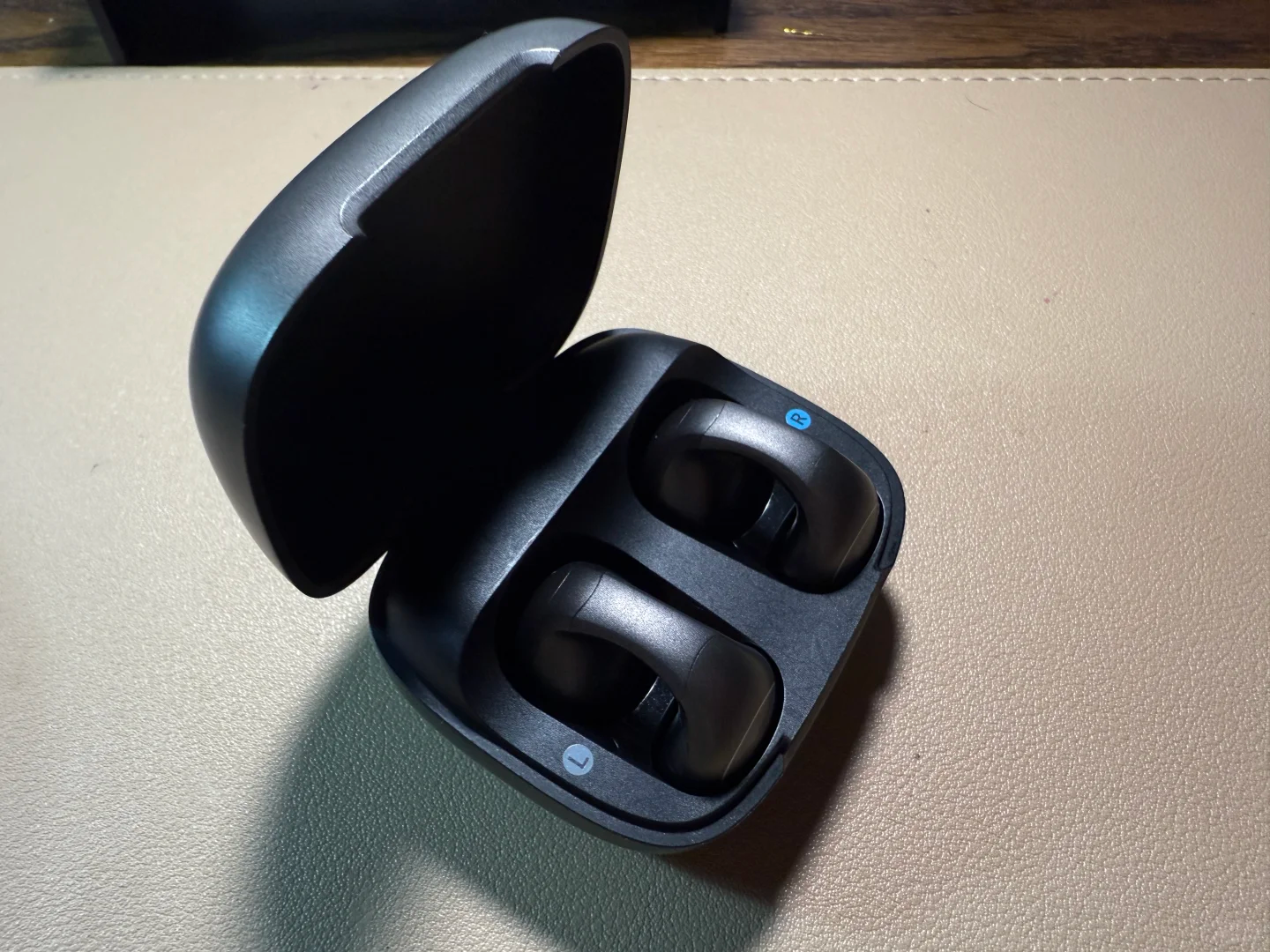 在佩戴舒适度方面,单耳仅4.8克,上耳后的存在感非常低。耳机采用不对称结构设计,搭配ZeroG云感耳扣和LevAir零压气囊,受力分散得很均匀,即便连续佩戴几个小时,耳朵也不会有明显疲劳感。连接桥采用钛合金骨架与记忆材料,弹性和回弹都很到位,日常弯折、取戴都很安心,运动时稳定性尤其突出。