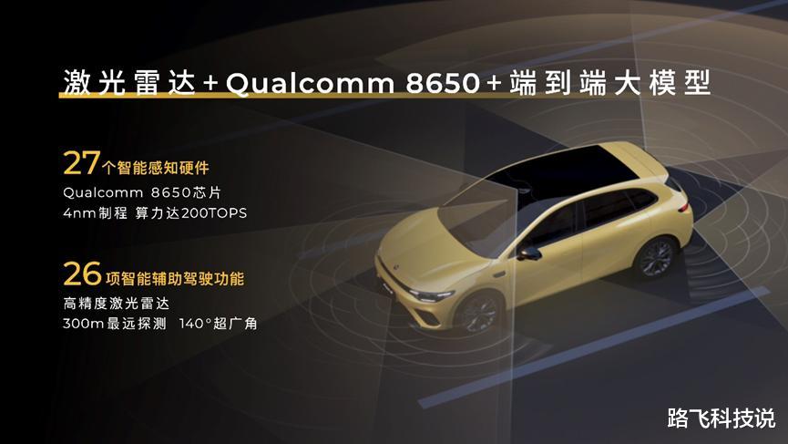 在驾驶辅助方面,激光雷达+27个高精硬件让其具备端到端辅助驾驶能力,支持高速与通勤领航辅助,未来将OTA升级城区领航功能。