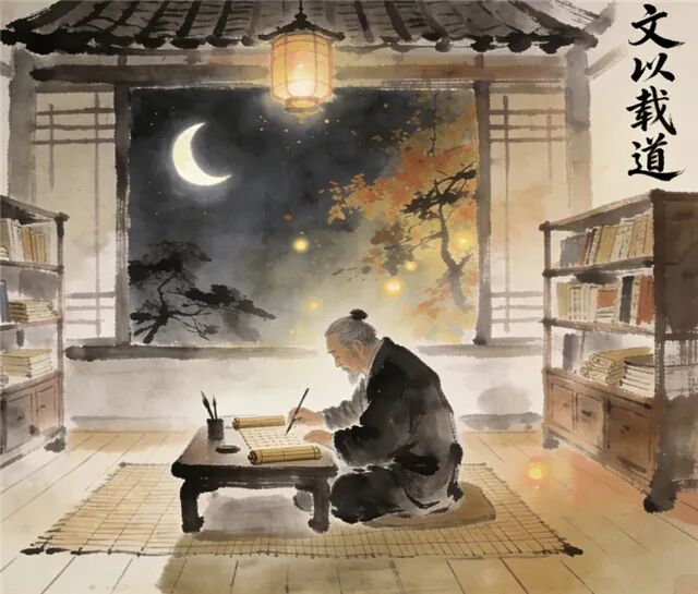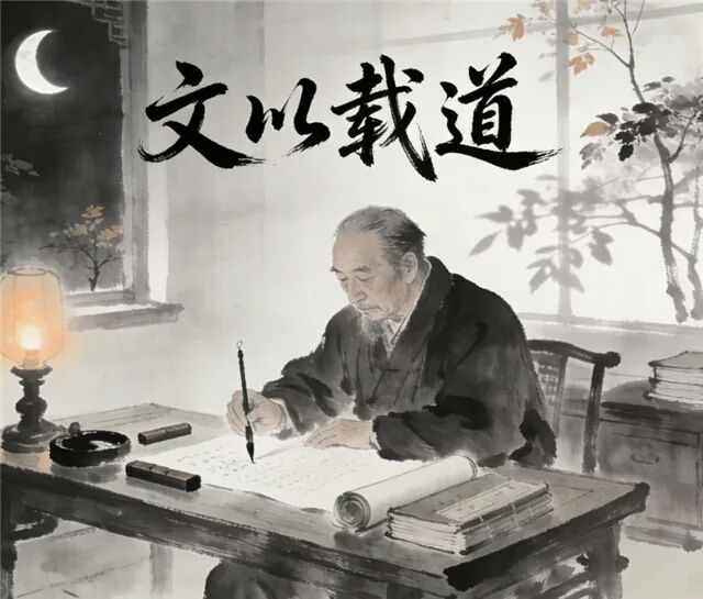 如此想来,“文以载道”四字,倒不必看作一把戒尺,或是一副重担。文自有其宿命,它生于人心之动,形于言,成于章句。那“道”,或如巨川,载着历史的沙石,沉沉地流过去;或如清溪,映着人心的花树,潺潺地诉说着。怕的反倒是那等急于“载道”的文章,将鲜活的心思,都风干成一条条教条的腊肉,挂了满篇,看似丰腴,嚼起来却柴得很。