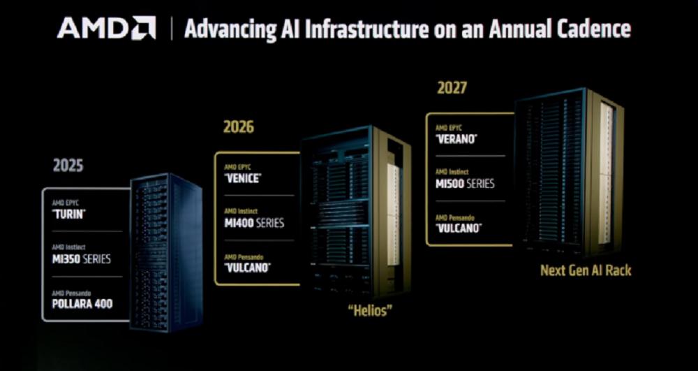 AMD CPU、GPU和机架的路线图(图源:AMD)