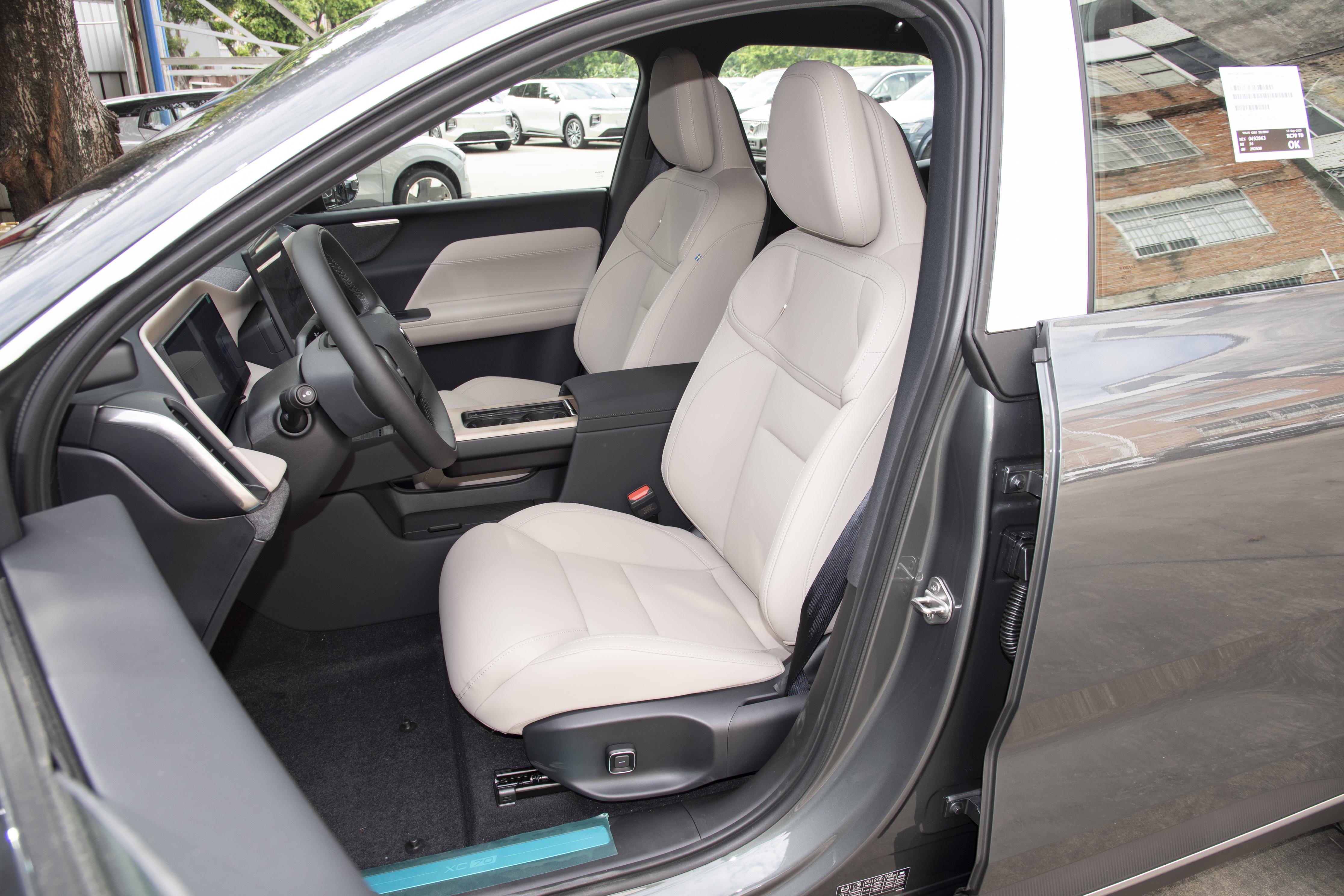 内饰氛围清爽简约,中控台使用可再生材质与纺织面料,搭配哑光饰条,触感细腻且环保。座椅采用皮质材料,柔软度与支撑性表现均衡,支持多向电动调节与腰部支撑调节,长时间驾驶不易产生疲劳感,高配版本提供座椅加热与通风功能,适配不同季节使用需求。车内储物空间设计人性化,门板储物格可容纳大尺寸水瓶,中控台下方镂空区域便于放置随身包具,中央扶手箱容积充足且带有分层设计,小件物品收纳规整。后备厢常规容积满足日常购物与短途出行需求,后排座椅放倒后容积大幅拓展,可容纳全家长途旅行行李,盖板下方隐藏空间便于存放工具与急救包,实用性拉满。