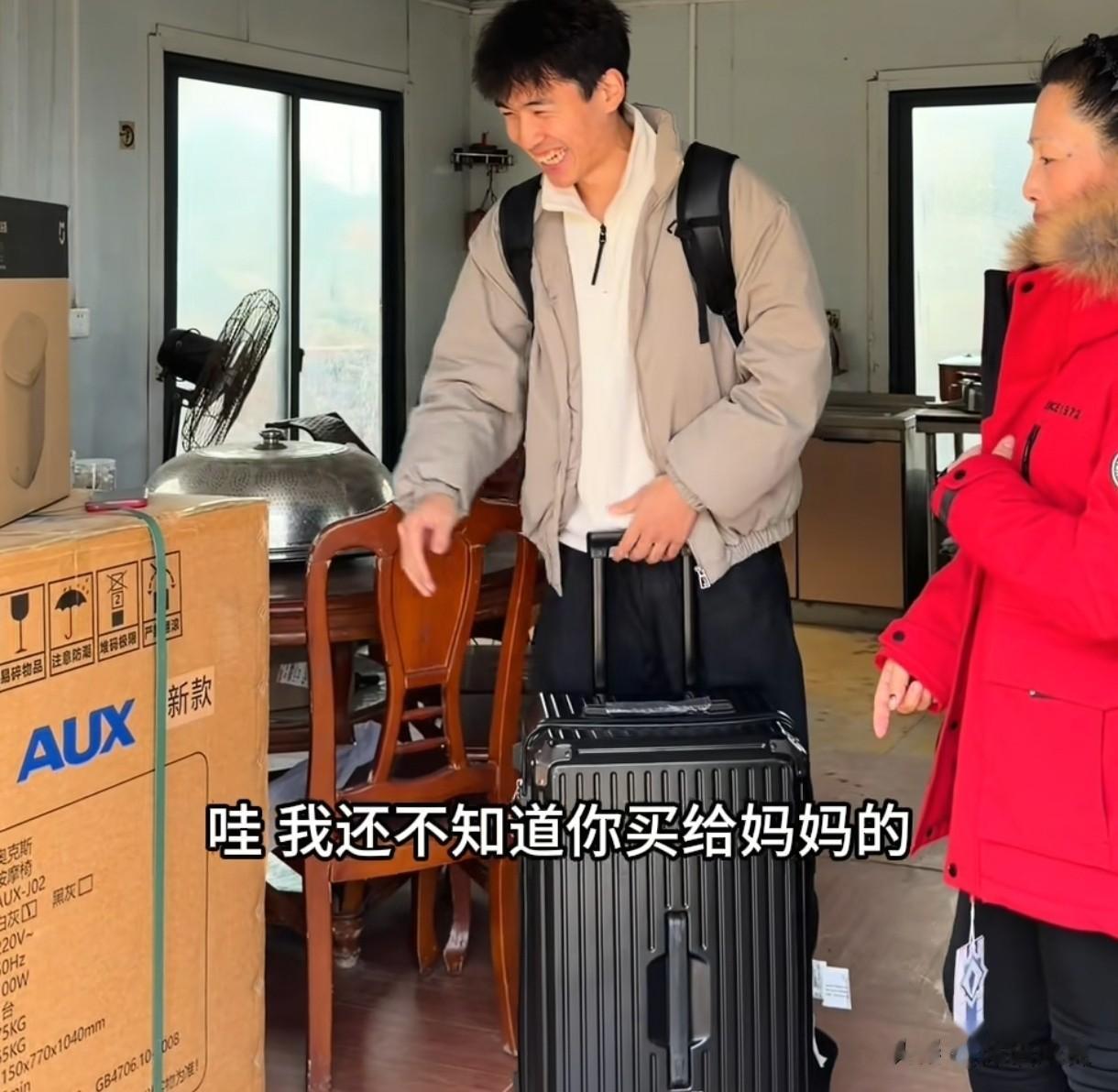 海军妈妈当天还收到了儿子快递回来的一个按摩椅和一个泡脚桶,当海军说这是给外公外婆的礼物时,海军妈妈略有“生气”的说:我还以为这是你买给妈妈的。
