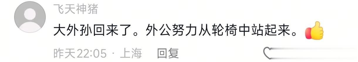 看到这一幕,网友们也被外公感动了。他那么努力的要站起来,就是想给外孙一个仪式感,让谢浩男有一种被重视的感觉。