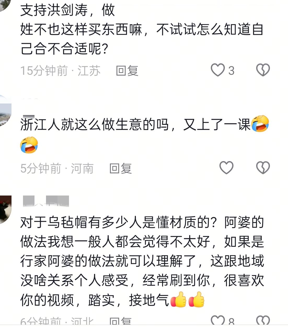 还有一些浙江网友认为洪剑涛买帽子的视频是后面回去补拍的,根本就不是当天发生的事情。