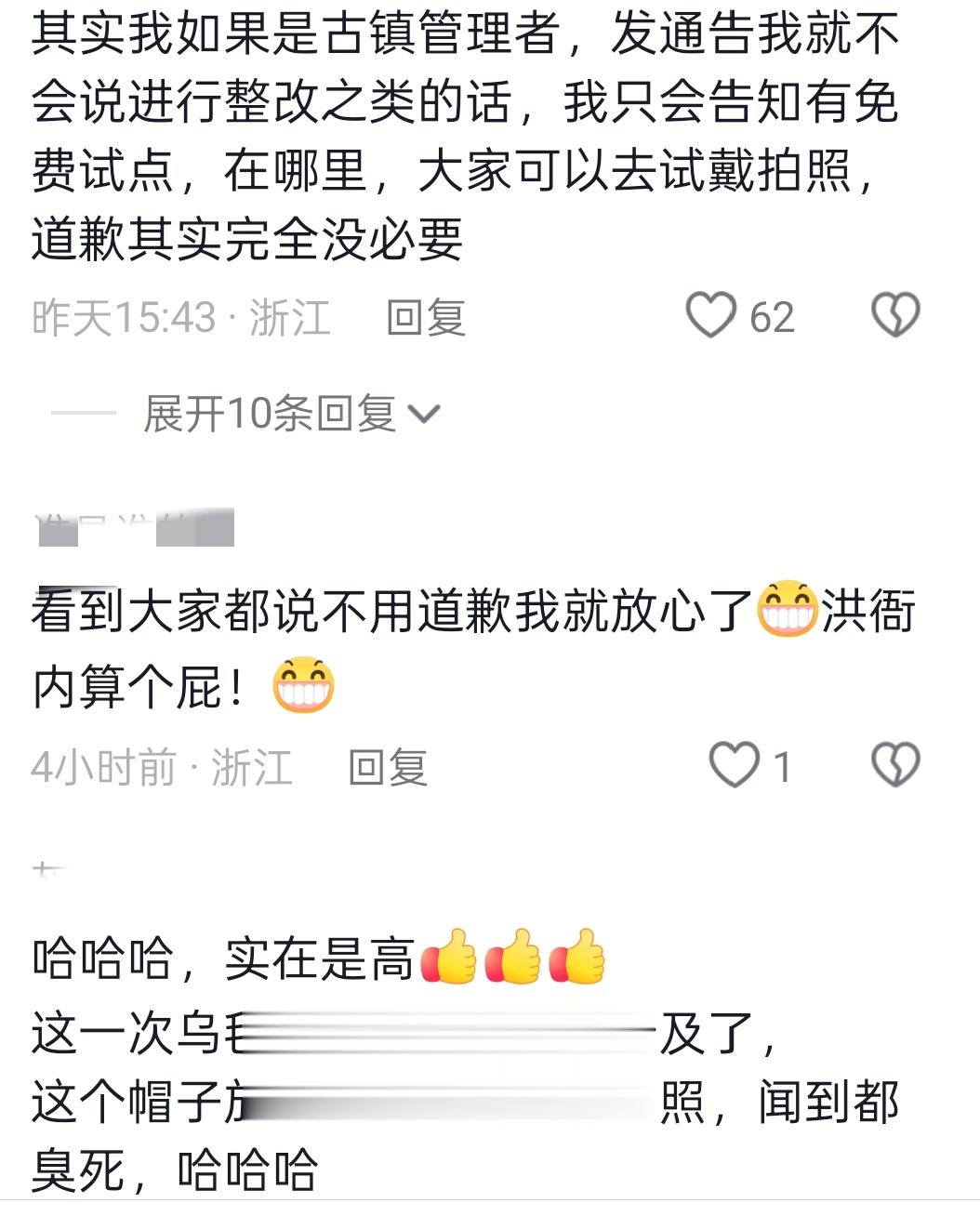 洪剑涛看到局面失控后,觉得不能再任由事态发展下去了,于是站了出来,发布了一条道歉视频,他向安昌古镇和浙江网友们道歉,同时也和网友们说清楚了当天买帽子的全过程。