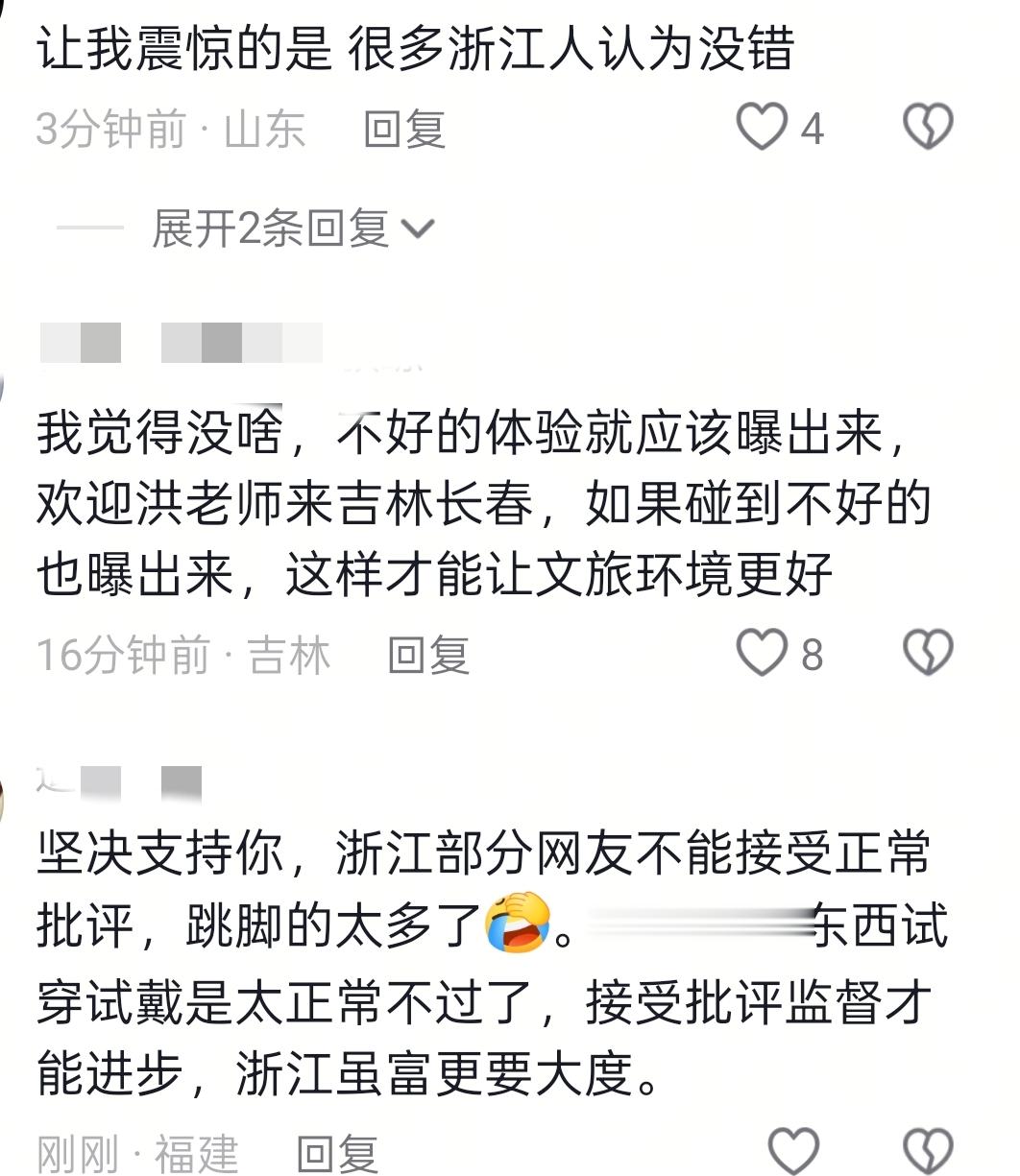 而浙江以外的网友都是力挺洪剑涛的,觉得洪剑涛没错,根本不需要道歉,有错的是收试戴费的商家。