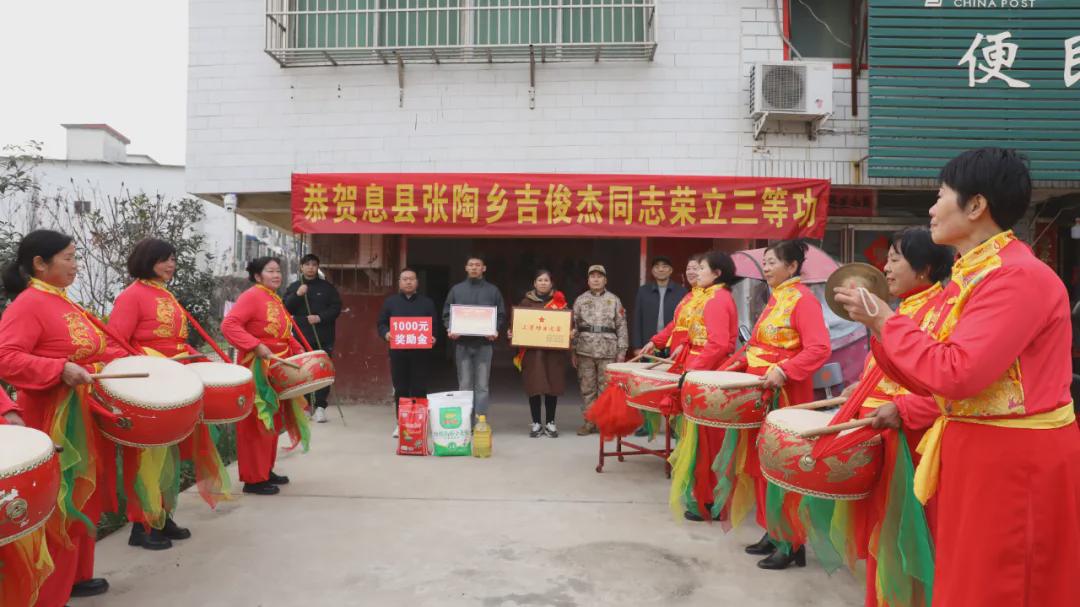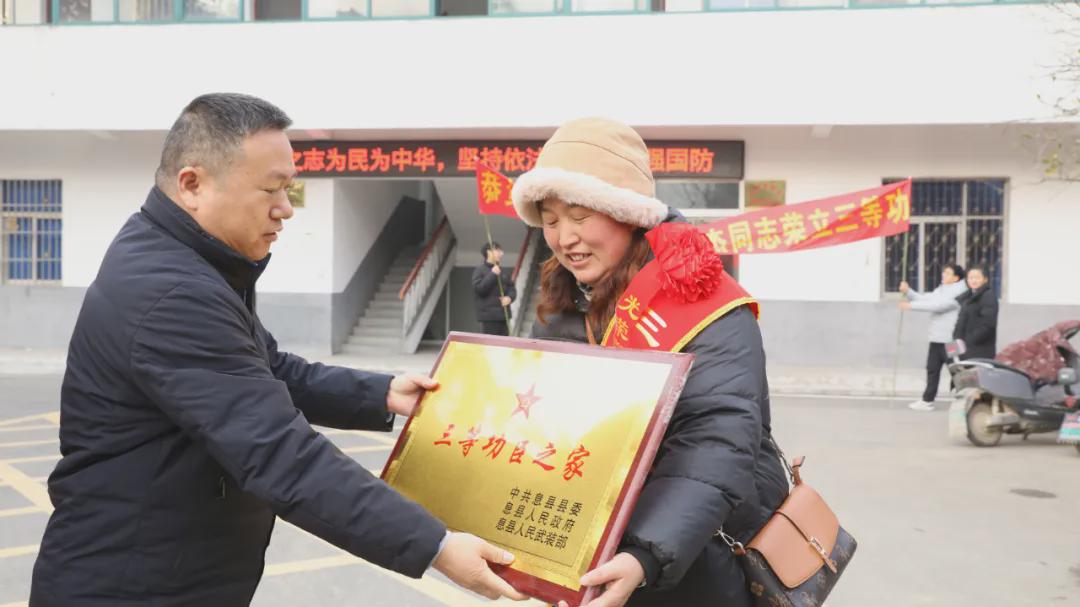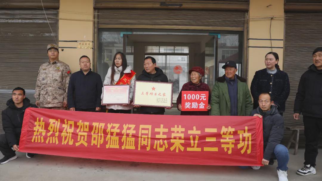 12月24日下午,息县退役军人事务局联合县人武部政治工作科、各乡镇(街道)、村(社区)组成慰问组,为息县彭店乡邵猛猛、张陶乡王付毫、张陶乡吉俊杰三位在部队荣立军功的军人家庭,逐一登门送上满载荣誉的喜报、奖章与慰问,把党和政府的关怀、部队的褒奖、社会的尊崇,亲自送到功臣家人的心坎上。