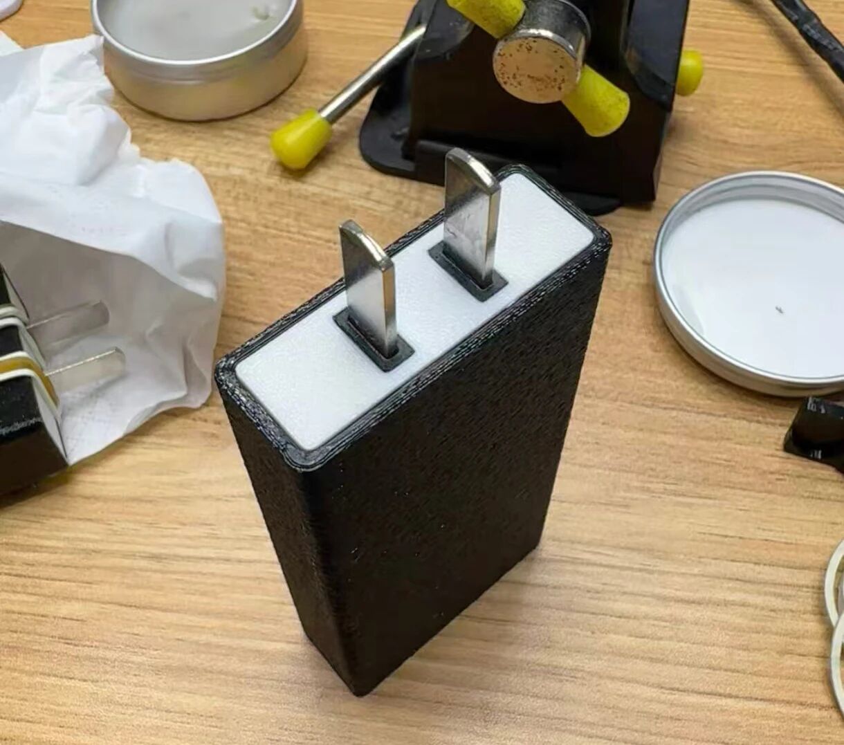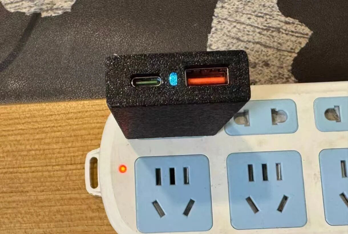 这是在我闲鱼收藏夹已久的DIY作品,一个厚度只有1.5cm的超薄充电头,不含插头的长宽分别是8.5x4.3cm,外壳是用3D打印的。