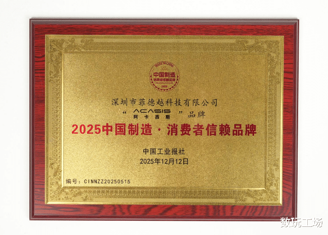 2025 年 12 月 26 日,深圳——由国务院国资委下属权威媒体中国工业报社主办的 “2025 中国制造・消费者信赖品牌” 评选公示工作近期有序推进。深圳市菲德越科技有限公司旗下核心品牌 “ACASIS 阿卡西斯”,凭借扎实的市场口碑、深厚的技术积淀及在数码存储与高速传输领域的亮眼表现,成功入围并荣膺该荣誉称号。