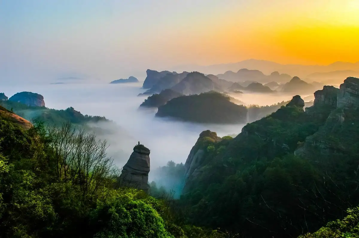 - 从石门湖乘船欣赏湖光山色,然后登山游览冠豸山的奇峰怪石和文化遗迹。接着前往竹安寨感受古老的寨堡风情,最后在九龙湖乘船观赏水上丹霞景观。