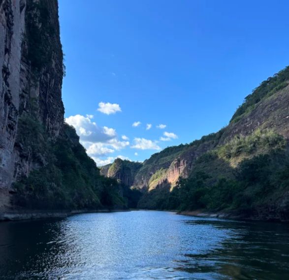 旅程的意趣,很大程度上在于欣赏河道两岸由丹霞岩层演绎的丰富形态。经过长期的风化与流水侵蚀,赤红色的崖壁上形成了诸多生动的景观。诸如“仙帆迎客”、“鲤鱼跃龙门”、“孔雀开屏”、“落霞壁”等景致,其名称皆源于岩石所呈现的具象形态或瑰丽色彩。其中,延伸数百米的落霞壁,以其大面积的丹红底色而尤为醒目。而在被称为“兰花谷”的乌龙峡,湿润的崖壁上则生长着茂盛的兰草,为雄奇的峡谷增添了几分清雅。