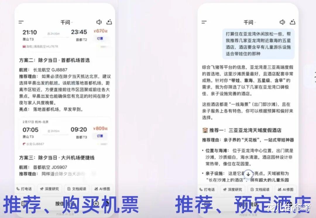 如此便捷的操作,你可以平移到订饭店、买火车票、买演出票等消费场景。也就是说,千问可以接入任何一种生活需求,让用户以省心省时的方式,在它这里完成消费和体验满足。