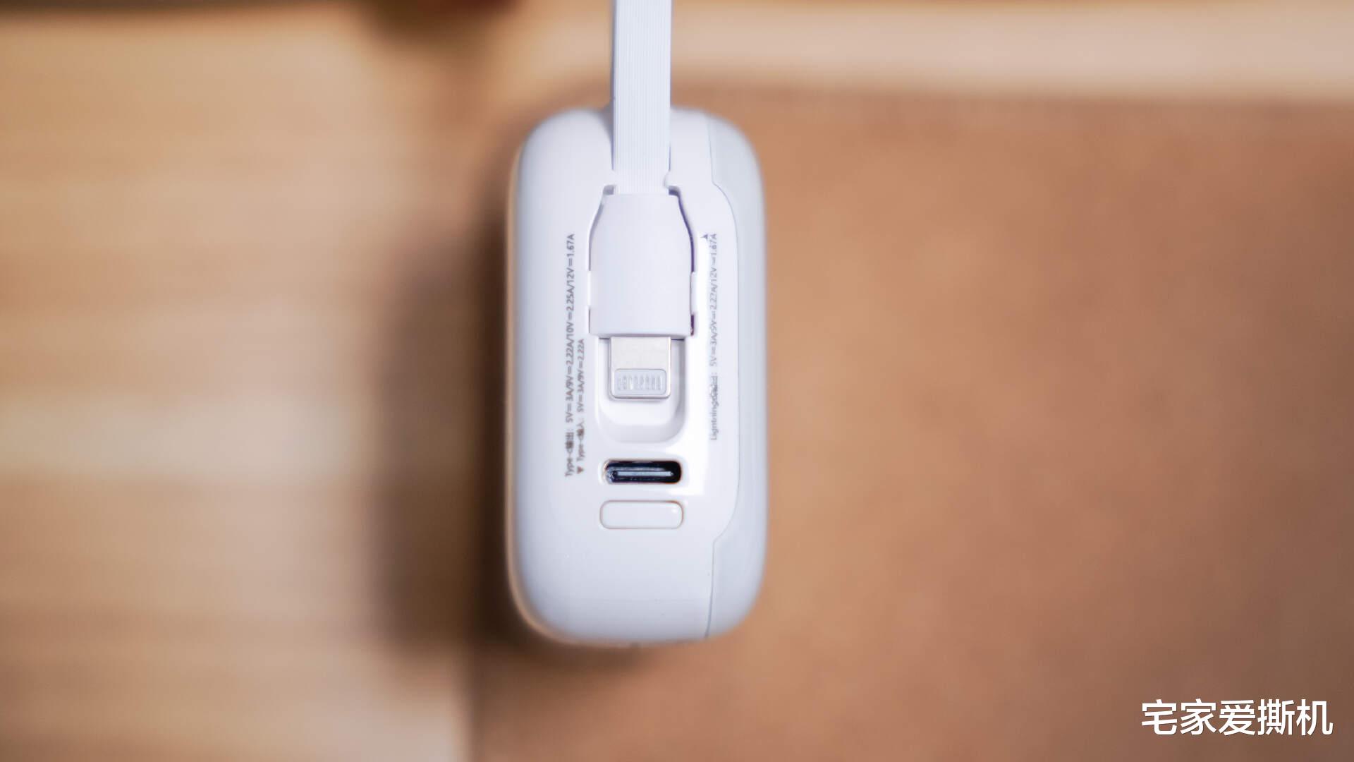 170g的重量是这款充电宝的一大亮点,比同容量传统充电宝轻了近30g,拿在手里几乎没有负重感,放进口袋或随身小包完全不占地儿,通勤路上携带毫无压力。最实用的设计当属自带的Type-C+Lightning双收纳线,不用额外搭配数据线,出门时随手抓起就能走,完美适配同时使用iPhone和安卓机型的用户,收纳时线条贴合机身,不会出现缠绕杂乱的情况。