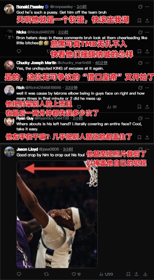对于詹姆斯的这次晒图,美国网友在全图下方调侃道:“只晒自己被碰的局部,是怕大家看到你按住对手脸的全貌吗?”“当你习惯了特权,就会把正常防守当成冒犯。”