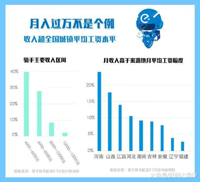 蜂鸟骑手收入主要集中在4000—8000元(包含兼职与专职骑手),超过了2017年全国城镇私营单位就业人员月均薪资3813.4元。上海地区“单王”陈龙军,月收入最高达3万。