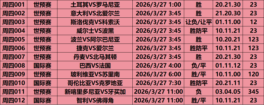 丹麦已连续缺席2018、2022两届世界杯,本次是球队重返世界杯的绝佳机会,主场作战战意拉满;北马其顿素有“巨人杀手”之称,曾在2022世预赛爆冷淘汰意大利,队史从未闯入世界杯正赛,本次迎来历史性突破机会,客场主打极致防守反击战术,两队硬实力差距显著,但丹麦后防线的稳定性是本场最大变数。
