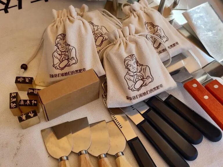 为了让奶奶们在制作时更省力,也为了让黑肥皂更有“产品”的样子,新疆山水环保中心通过多年工作,逐步完善了黑肥皂制作的材料包:从模具、带有奶奶们名字的印章再到各种型号的铲子等。