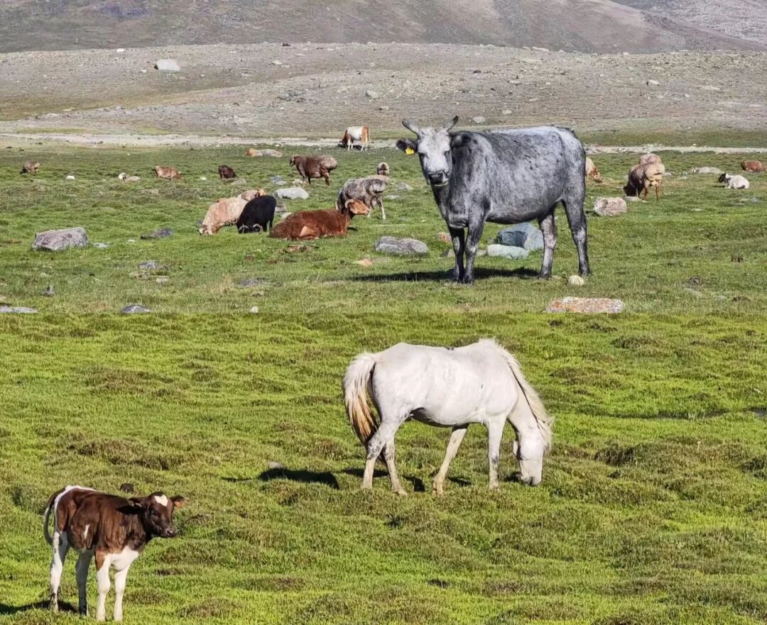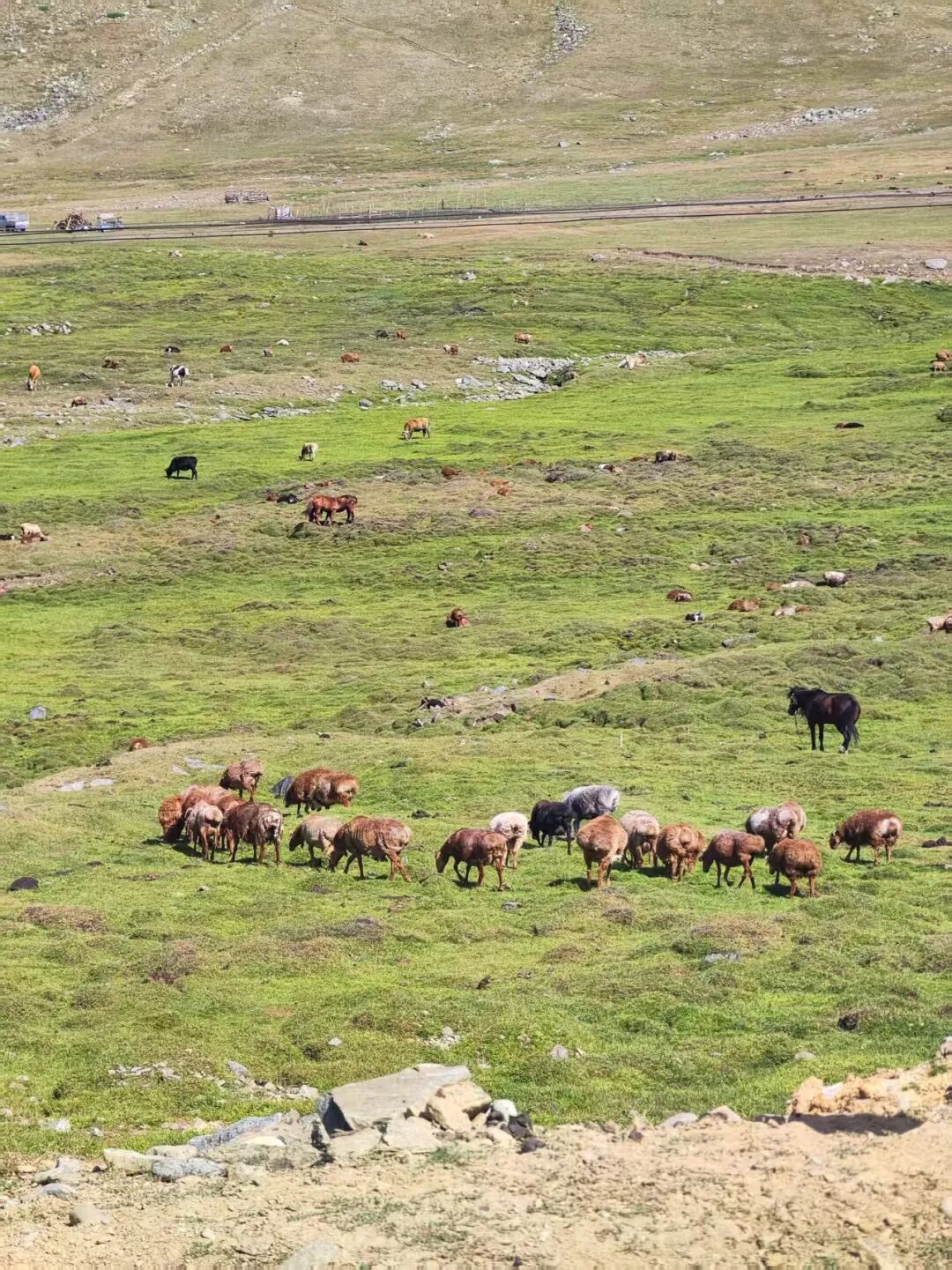 有牧民说,往年这个时候,牲畜在夏牧场吃草,如今提前往山下跑,肯定是山上的草不够吃了。别先给我们说:‘有一种草叫白草,还有长势比较矮的羊茅,蒿草和柳叶菊,这四种草都很适合牛、羊、马和骆驼吃,从2020年开始到现在,在夏牧场几乎看不见了。2024年的情况更严重,如果2025年还不下雨,我们的草场会更糟糕’。”