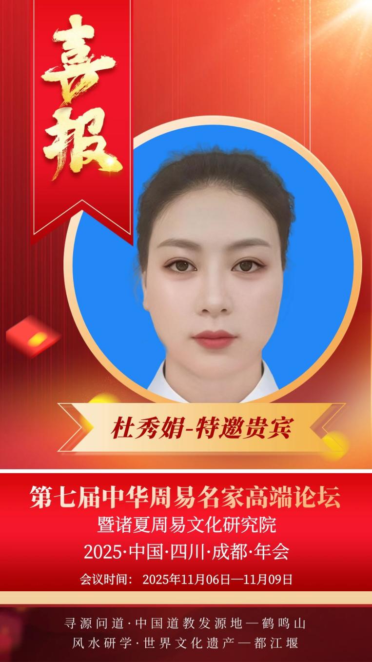 2025年11月6日至9日,第七届中华周易名家高端论坛在成都鹤鸣山盛大举行。此次论坛汇聚了众多易学领域的专家学者以及传统文化爱好者,在道教文化的发源地,共同开启了一场探索易学传承与发展的盛会。在众多参会者中,来自四川省南充市南部县的杜秀娟,以其对传统文化的执着追求和积极实践,成为了论坛上一颗备受瞩目的新星。