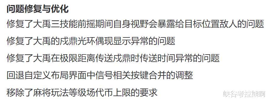 大禹的加强也非一时兴起,而是该英雄目前的胜率和出场率确实偏低,虽然有熟练度普遍不高的元素,但数值偏低在体验服里也是硬伤,所以才有了本次三个技能的紧急加强。