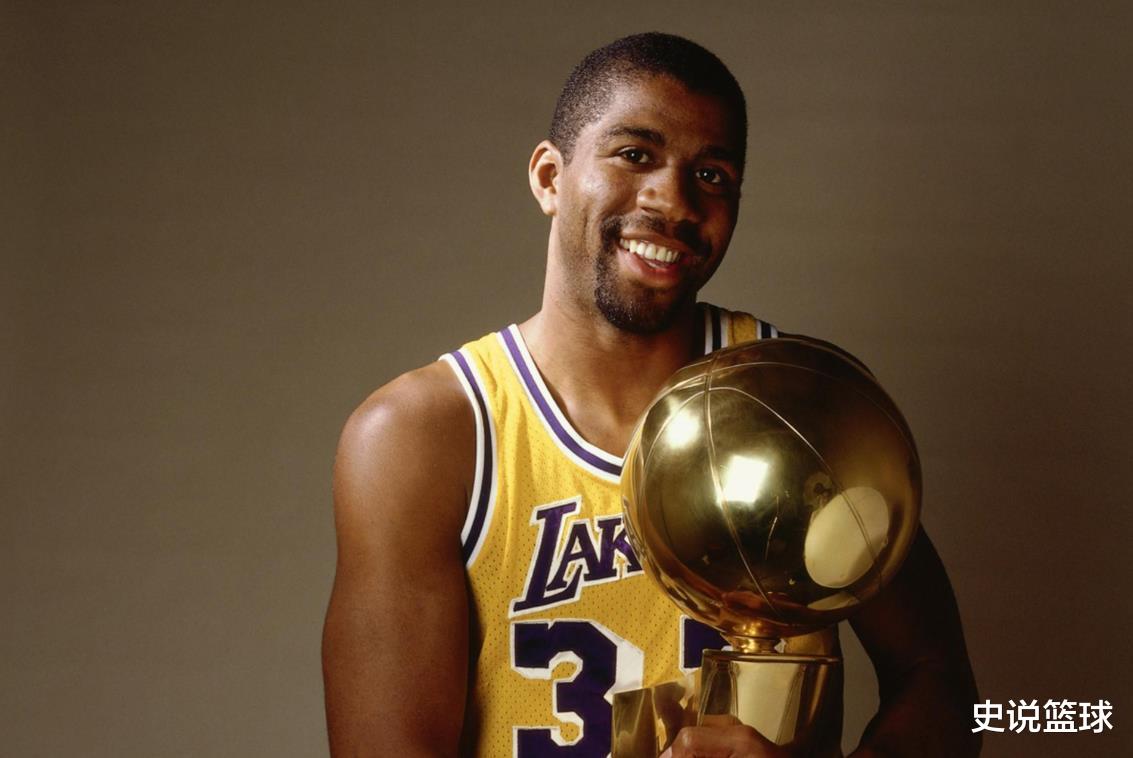 说到新秀赛季就拿到总决赛MVP的,全联盟历史上只有魔术师约翰逊一人,这含金量比任何数据都硬。1979-80赛季,刚满20岁的魔术师场均得到18.0分、7.7个篮板和7.3次助攻。数据看着并没那么华丽,但他的大心脏和全能性在总决赛彻底爆发。在决定冠军归属的第六场,球队核心贾巴尔因伤缺阵,魔术师挺身而出客串中锋,轰下42分15篮板7助攻和3抢断的史诗级数据,带领湖人夺冠并荣膺FMVP。这种临危受命、跨位置统治比赛的表现,堪称传奇。