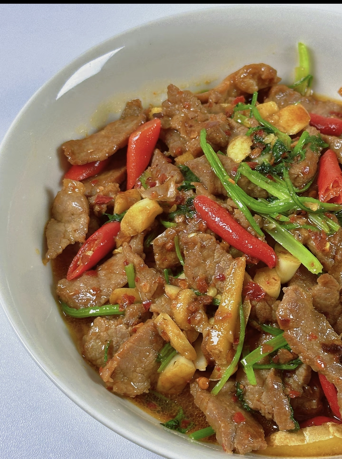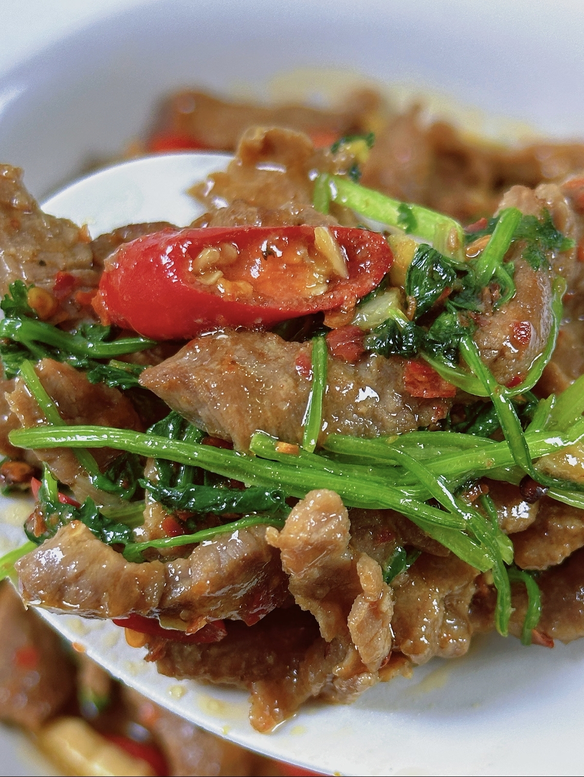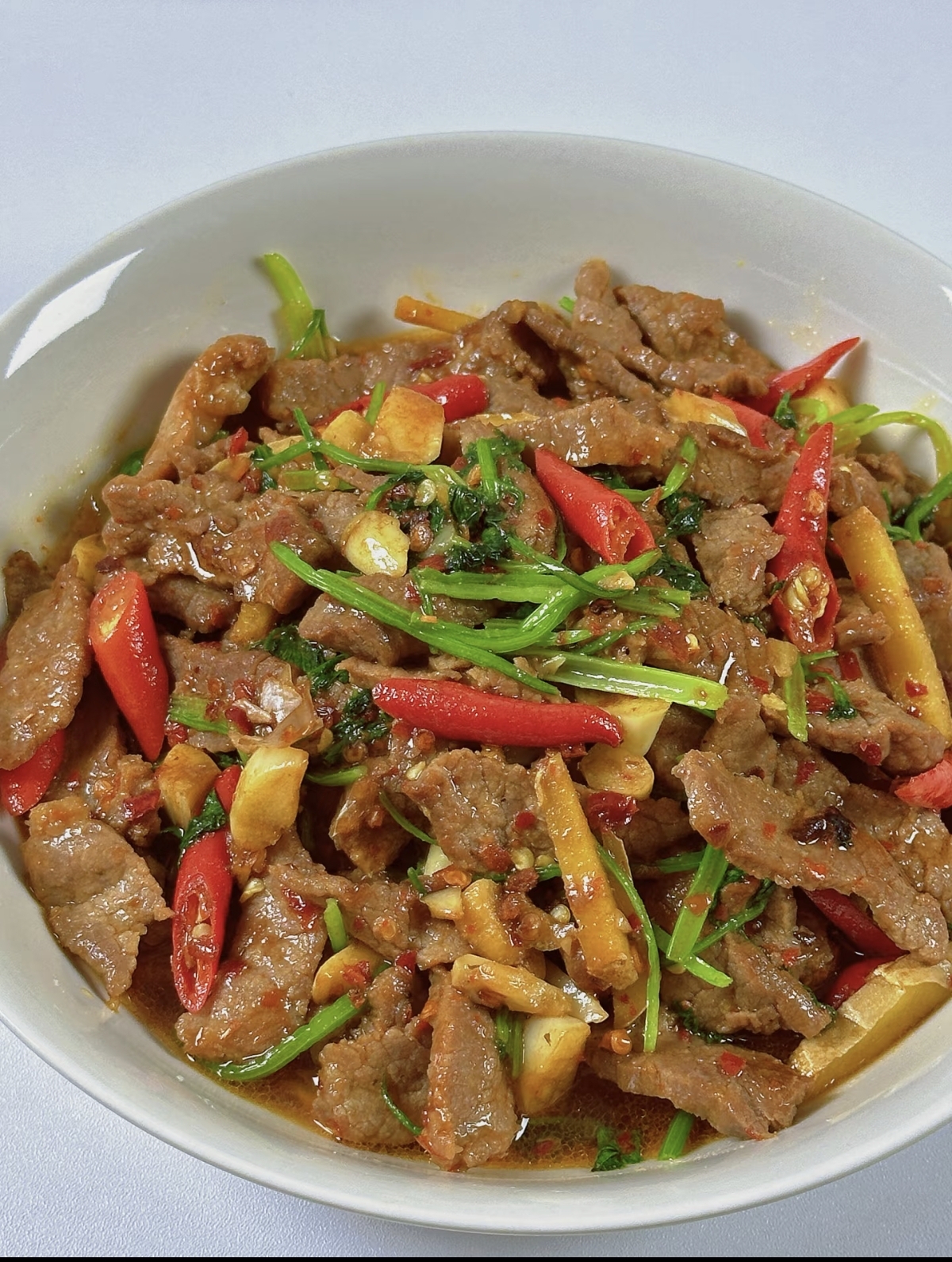 看着盘中红绿相间的诱人色泽,闻着那扑鼻而来的香辣气息,早已是按捺不住。夹起一片牛肉,入口是极致的滑嫩,紧接着是香辣在舌尖炸开,牛肉的鲜美与配菜的风味交织在一起,让人欲罢不能。这道菜的魅力,就在于它的简单直接,用最家常的食材,做出了最下饭的味道。当你用它拌着热气腾腾的米饭,大口吃下时,所有的疲惫都会被这份热辣的满足感一扫而空。这,就是小炒黄牛肉的魔力,简单,却足以让人爱到骨子里。