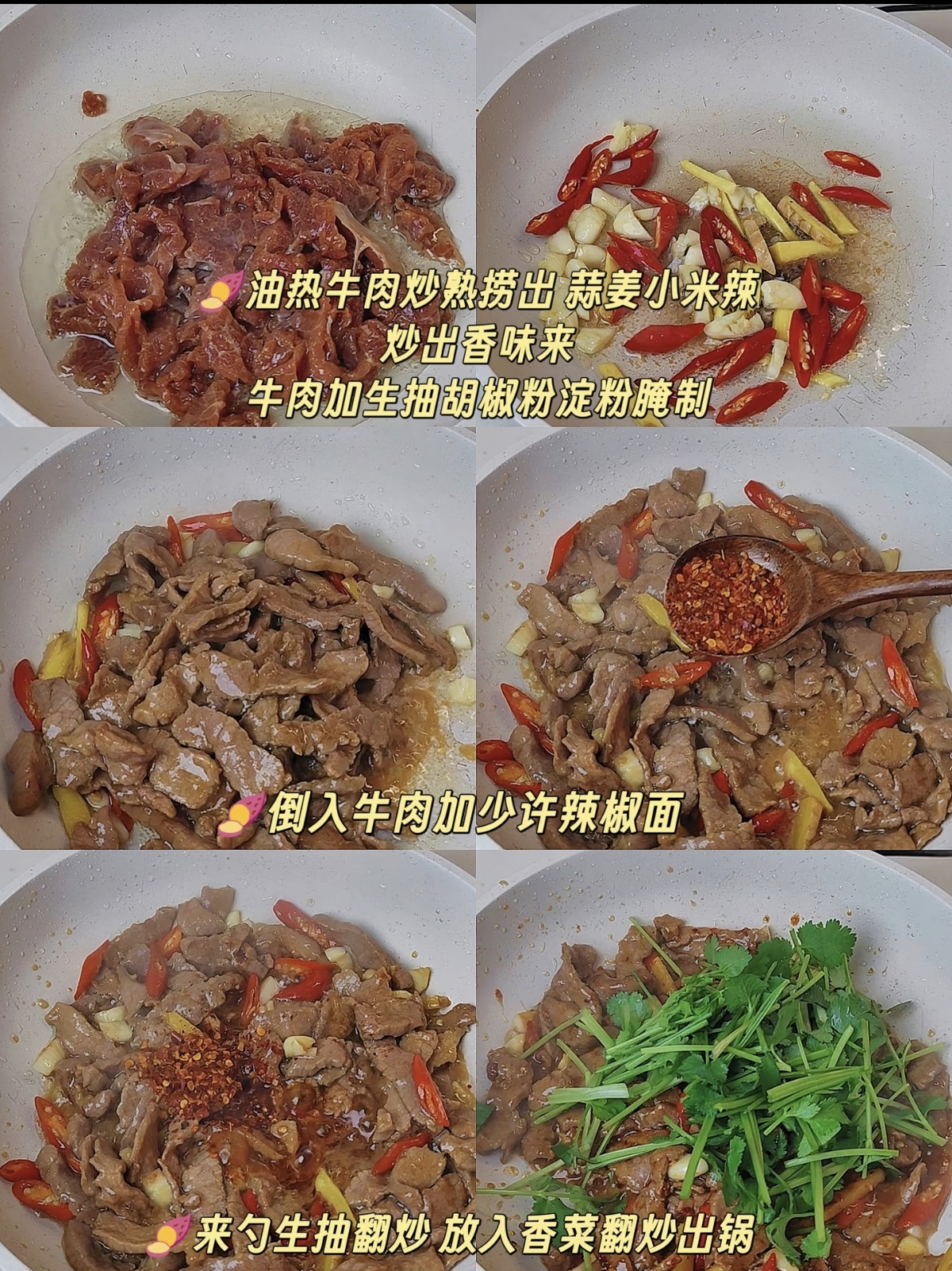 锅中留底油,转中小火,放入姜蒜末和泡椒圈,煸炒出浓郁的香味。接着,下入小米辣,继续翻炒,让辣味充分释放到油中。然后,将之前滑炒好的牛肉倒回锅中,转大火,快速翻炒均匀。此时,可以沿着锅边淋入少许生抽,激发出酱香味,再加入一点蚝油和白糖提鲜。整个过程行云流水,一气呵成。