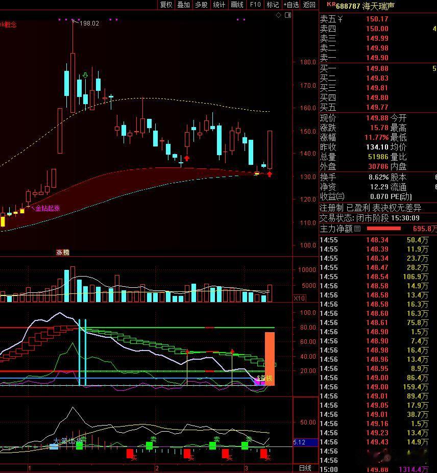 海天瑞声688787,周五明显是游资的模式参与高弹性个股,在事件的推动下,趋势延续性或有加强。
